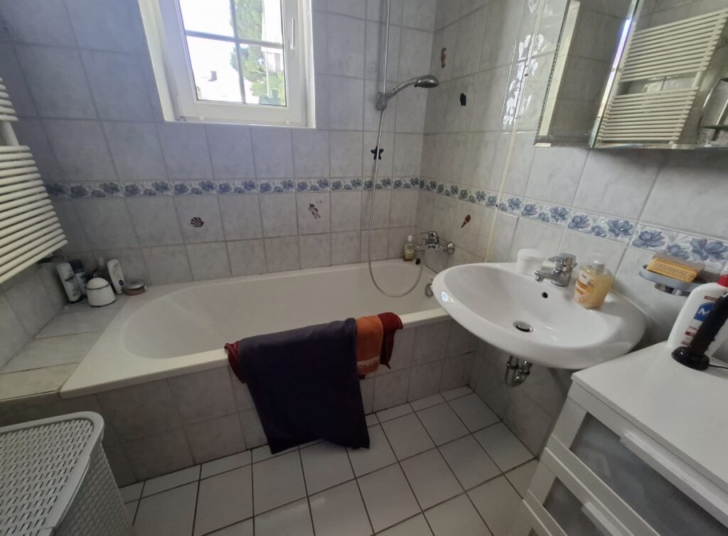 Ausgangssituation war ein klassisches Bad mit Badewanne, das im Alltag zunehmend unpraktisch wurde. Ziel des Umbaus war es, mehr Komfort und vor allem einen sicheren, barrierearmen Zugang zur Dusche zu schaffen.
